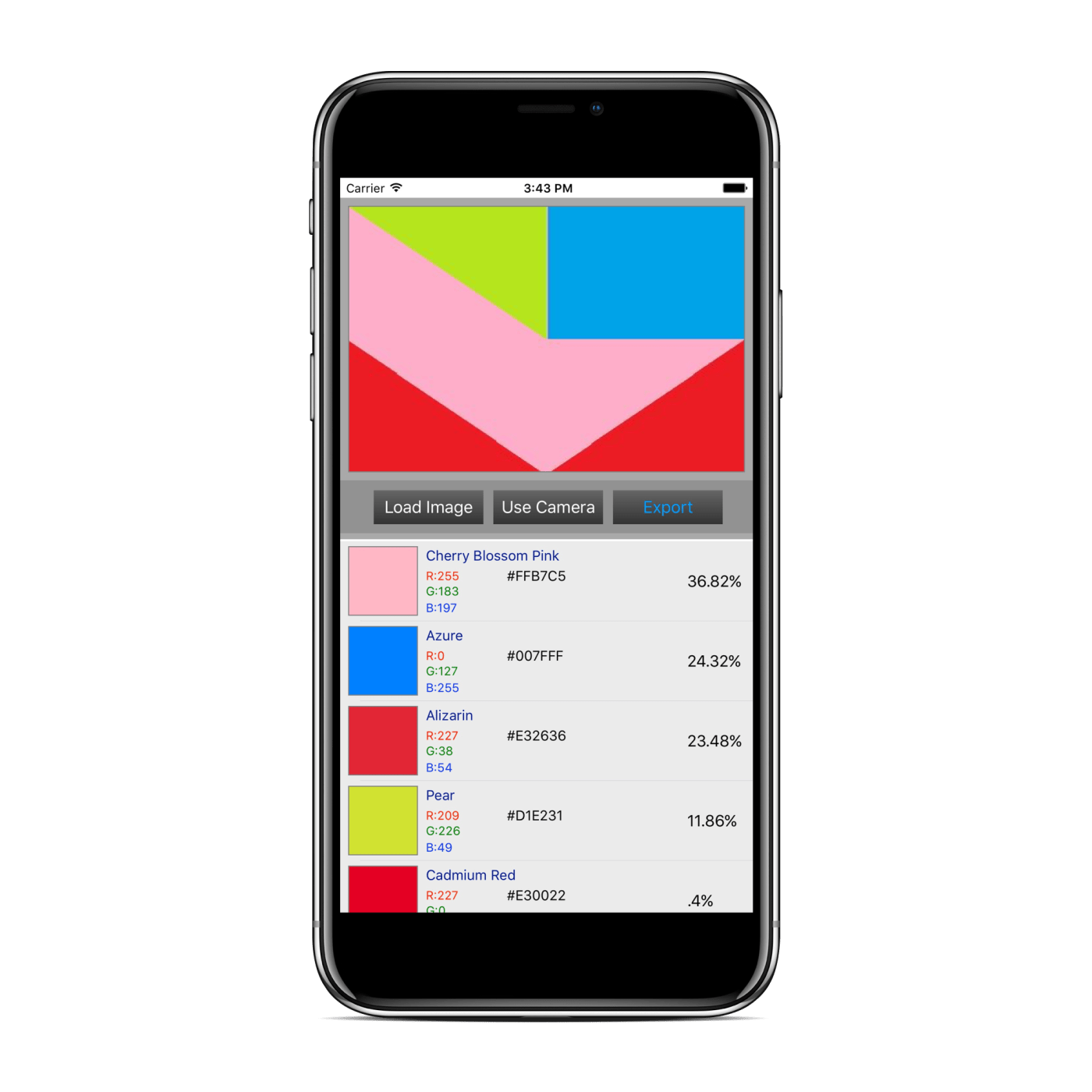 Color Analysis App allows you to perform deep color analysis for any image. you can select local stored image or take a picture from your smartphone camera. after the image has been processed you will get the color information : such as color name , RGB, Hex Code,Color Percent. the colors will be sorted from the most from the most dominance color to the less significant.