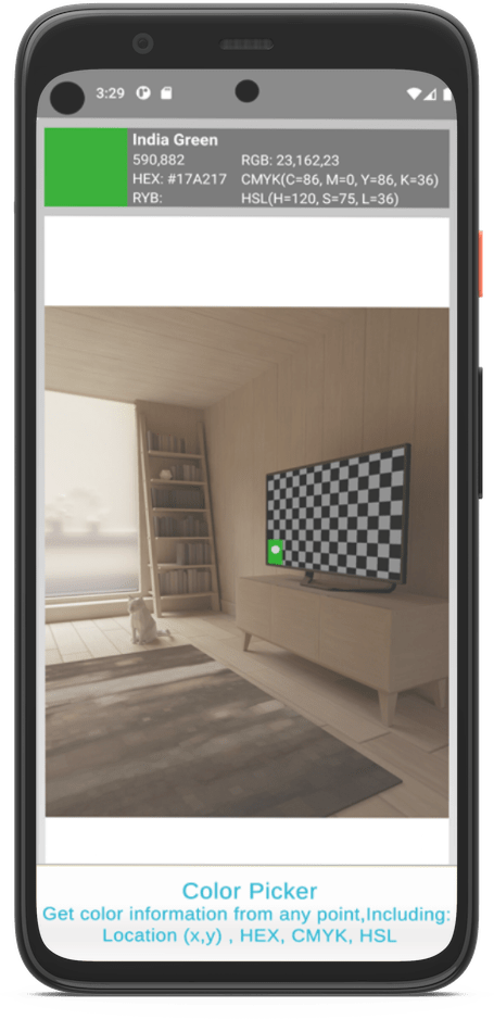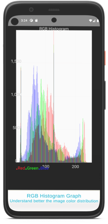 You can also see the Colors R/G/B histogram, get specific color information using color picker from any part of the image, define your own palette for analysis, set color analysis accuracy or even see the actual color pixels by clicking the color box.
