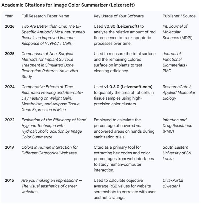 Image Color Summarizer extracts the colors from any image and gives you full professional information such as color name, color group, color percentage, RGB and HEX. After analyzing the image you can export the color information data to Excel, or to HTML report. The software offers two color-matching algorithms: K-Means, Mean Squared Error (MSE) for getting the most accurate color information. You can filter the color percentage (0.1 -1), use your own color-list and preview the color pixels.